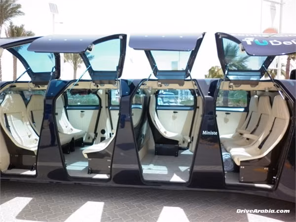 Hành khách đi trên chiếc siêu bus này sẽ được phục vụ như đang đi trên một chiếc limousine hoặc phi cơ riêng. Chiếc xe bus gồm 8 cánh cửa dạng mở hình cánh chim ở mỗi bên của chiếc xe, giúp việc ra vào của hành khách dễ dàng hơn.
