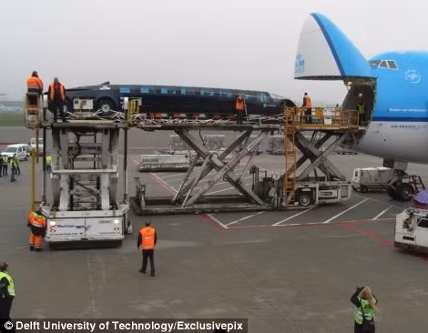 Chiếc siêu bus được vận chuyển bằng một máy bay phản lực.