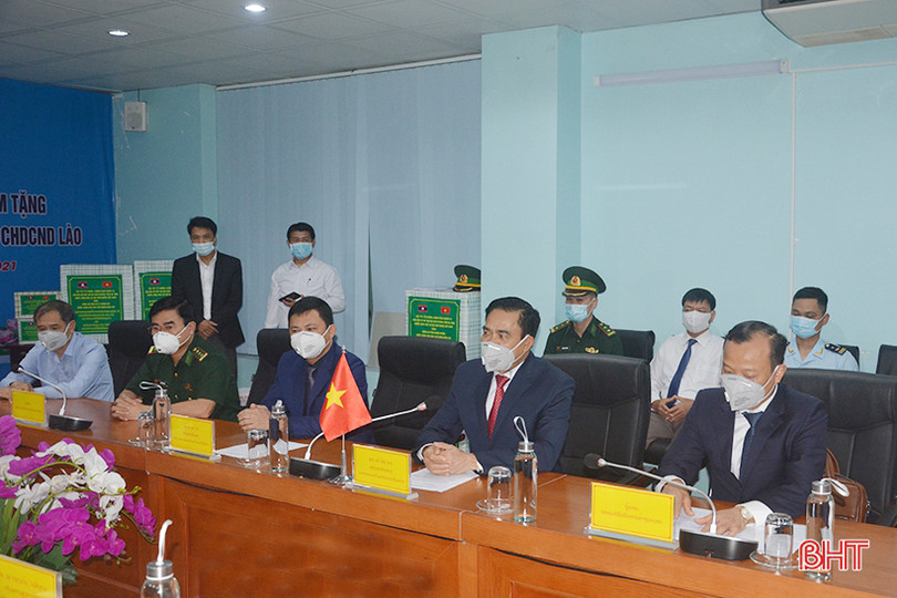 Tiếp nhận gói hỗ trợ vật tư y tế do tỉnh Hà Tĩnh trao tặng, Bí thư, Tỉnh trưởng tỉnh Bôlykhămxay Kong Keo Xay Sông Kham và Phó Bí thư, Phó Tỉnh trưởng tỉnh Khăm Muộn Bun Mi Phin Mạ Sỏn cảm ơn tình cảm tốt đẹp, sự quan tâm, giúp đỡ quý báu của tỉnh Hà Tĩnh dành cho 2 tỉnh.