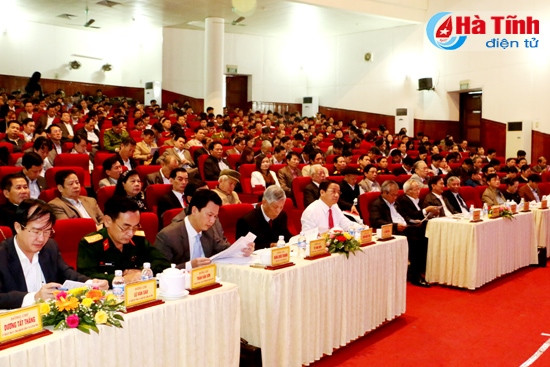 Trong đó mục tiêu tổng quát là: Nâng cao năng lực lãnh đạo, sức chiến đấu của Đảng bộ, phát huy dân chủ, đoàn kết toàn dân; đẩy mạnh tái cơ cấu kinh tế gắn với đổi mới mô hình tăng tưởng; mở rộng hội nhập; huy động tối đa và sử dụng có hiệu quả các nguồn lực; xây dựng kết cấu hạ tầng đồng bộ, từng bước hiện đại; phát triển mạnh công nghiệp và dịch vụ gắn với nền nông nghiệp công nghệ cao, quy mô lớn theo hướng CNH-HĐH; đầu tư phát triển VH-XH và hệ thống đô thị ngang tầm với phát triển kinh tế; bảo vệ môi trường, chủ động ứng phó với biến đổi khí hậu; bảo đảm QP-AN, TTATXH, giữ vững ổn định chính trị; đưa Hà Tĩnh phát triển nhanh hơn, bền vững hơn theo hướng công nghiệp hiện đại.