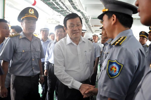 Sáng nay, (27/7) tại TP.Hạ Long, Chủ tịch nước Trương Tấn Sang đã kiểm tra tiến độ đóng tàu kiểm ngư KN 782 tại Công ty trách nhiệm hữu hạn một thành viên (TNHH MTV) Đóng tàu Hạ Long.