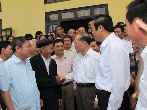 Phát biểu tại buổi tiếp xúc cử tri, Chủ tịch Quốc hội Nguyễn Sinh Hùng đánh giá cao những kết quả mà Đảng bộ, nhân dân Hà Tĩnh nói chung và các địa phương trên nói riêng đã đạt được trong thời gian qua. Đồng chí Chủ tịch Quốc hội cũng đã trực tiếp giải trình một số ý kiến và hứa tiếp thu nghiêm túc những vấn đề cử tri cùng quan tâm. Các ý kiến liên quan đến chương trình xây dựng nông thôn mới, đồng chí lưu ý các địa phương không nên huy động sức dân quá mức để đạt bằng được các tiêu chí xây dựng nông thôn mới mà cần chú ý các tiêu chí quan trọng, có tầm chiến lược lâu dài để thực hiện. Các địa phương cần tính toán, nghiên cứu đầu tư cụ thể hơn vào từng tiêu chí, từng nơi, từng thời điểm để phát huy tối đa hiệu quả. Ngoài ra, đội ngũ cán bộ cơ sở cần phải năng động hơn nữa, tiếp tục đổi mới phương thức làm việc, gần dân hơn để triển khai có hiệu quả các chủ trương, chính sách của Đảng, nhà nước….
