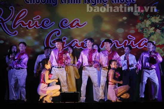 Chương trình nghệ thuật “Khúc ca giao mùa” được tổ chức khá hoành tráng với hơn 12 tiết mục ca múa, nhạc do anh chị em nghệ sĩ, diễn viên đoàn Nghệ thuật truyền thống Hà Tĩnh thể hiện.