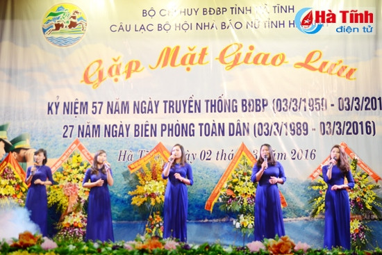 (Baohatinh.vn) - Tối 3/3, BĐBP Hà Tĩnh, Câu lạc bộ Nhà báo nữ Hà Tĩnh tổ chức đêm giao lưu văn nghệ chào mừng 57 năm ngày truyền thống BĐBP (3/3/1959-3/3/2016), 27 năm ngày Biên phòng toàn dân (3/3/1989-3/3/2016) và ngày Quốc tế Phụ nữ 8/3.