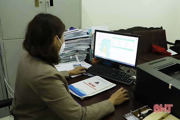 Cán bộ Sở Công Thương theo dõi doanh nghiệp cập nhật tình hình trên Bản đồ sống chung an toàn với COVID-19.