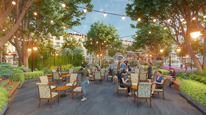 Ngay trong khuôn viên, một khoảng sân rộng gần 2.000 m2 sẽ được bài trí với vườn hoa, cây xanh, đài phun nước và các tiện ích hiện đại, không gian vui chơi, sinh hoạt cộng đồng đã được đơn vị phát triển dự án chú trọng đầu tư.