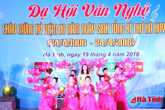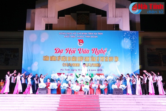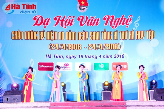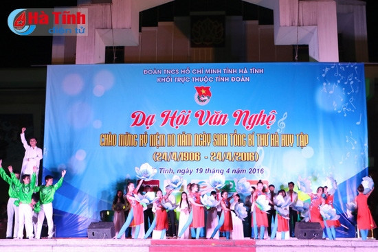 (Baohatinh.vn) - Tối 19/4, tại Trung tâm Văn hóa - Điện ảnh tỉnh, Đoàn khối trực thuộc Tỉnh đoàn tổ chức chương trình dạ hội chào mừng kỷ niệm 110 năm ngày sinh Tổng Bí thư Hà Huy Tập (24/4/1906-24/4/2016). Phó Chủ tịch UBND tỉnh Nguyễn Hồng Lĩnh, đại diện lãnh đạo các đơn vị và hàng trăm ĐVTN cùng tham dự đêm dạ hội.