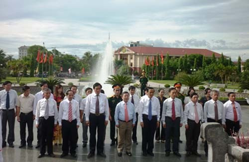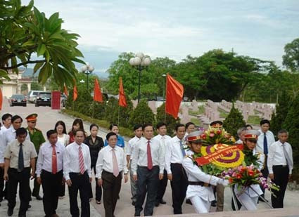 Sáng 1/9, Đoàn đại biểu Tỉnh ủy, HĐND, UBND, UB MTTQ Việt Nam tỉnh Hà Tĩnh, các Ban Đảng, đại diện lãnh đạo các sở ngành, đoàn thể trong tỉnh, lãnh đạo T.P Hà Tĩnh do Bí thư Tỉnh ủy Nguyễn Thanh Bình, Chủ tịch UBND tỉnh Võ Kim Cự dẫn dầu đã đến đặt vòng hoa, dâng hương tại Khu lưu niệm Bác Hồ và Nghĩa trang Liệt sỹ Núi Nài (T.P Hà Tĩnh) nhân kỷ niệm 67 năm ngày Quốc khánh nước CHXHCN Việt Nam (2/9/1945-2/9/2012).