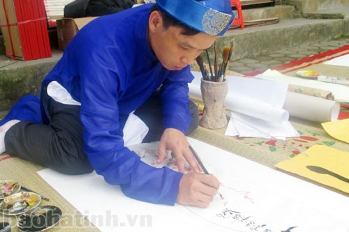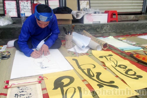 Chia sẻ với chúng tôi, ông đồ Từ Xuân Bắc (Hội viên hội Văn học nghệ thuật Hà Tĩnh) cho hay: “Vốn là thầy giáo dạy mỹ thuật, mang trong mình niềm đam mê thư pháp nên gần chục năm nay bên cạnh việc dạy học, tôi còn viết thư pháp. Năm nào cũng vậy, 25 Tết là tôi bắt đầu viết chữ và kéo dài tới hết những ngày Tết cổ truyền. Đến với nghề, trau nghề tôi không nhấn mạnh vật chất mà quan trọng là muốn giữ hồn cốt dân tộc, truyền thống quý báu của cha ông”.