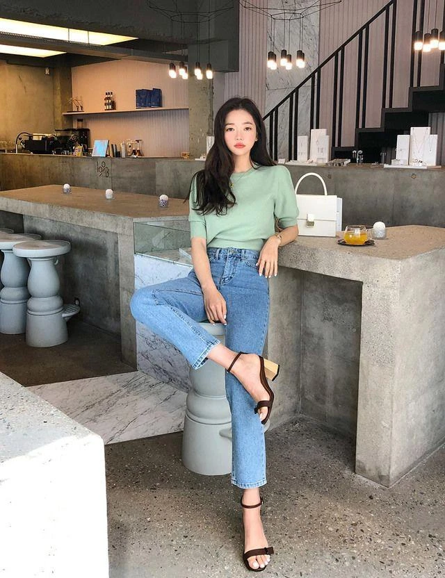 Đơn giản nhưng không hề đơn điệu đó chính là công thức kết hợp giữa áo len và quần jeans ống đứng. Điểm nổi bật trong set đồ này không nằm ở kiểu dáng quần áo mà phụ thuộc vào cách lựa chọn màu sắc trang phục và cách kết hợp phụ kiện đi kèm. Chỉ cần tinh tế hơn đôi chút là bạn đã có thể mặc đẹp như các ulzzang xứ Hàn.