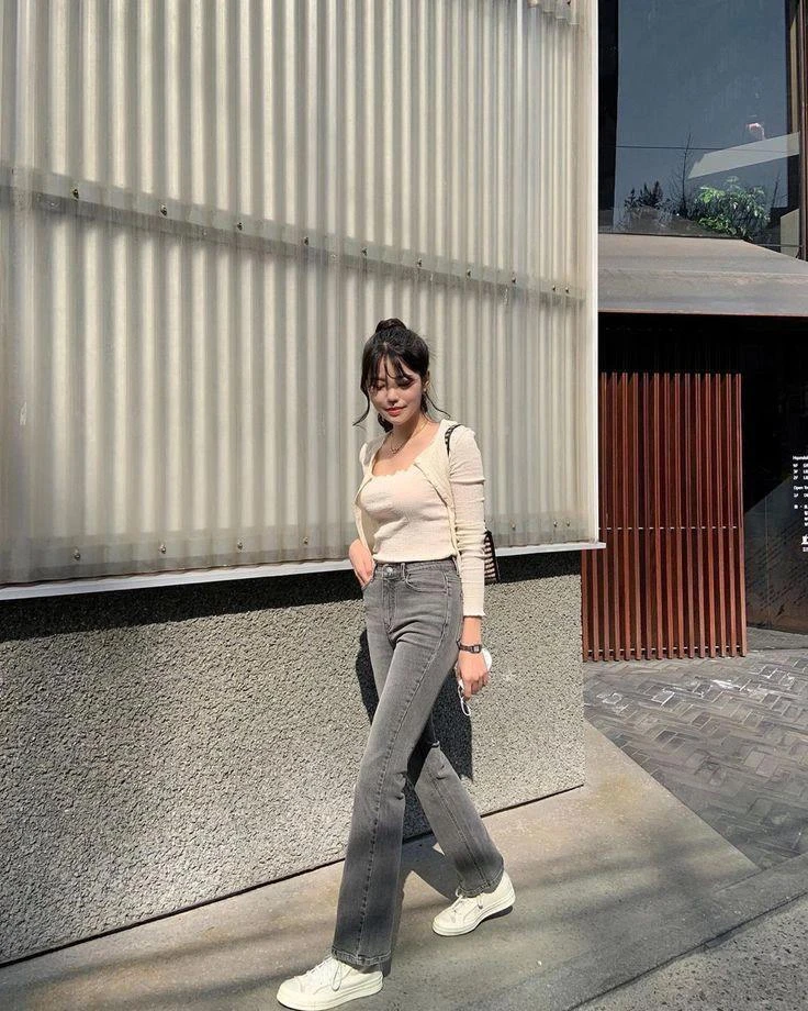 Tiết trời mát mẻ của mùa thu rất phù hợp cho một bộ đồ phối giữa áo sơ mi và quần jeans ống đứng. Khả năng ứng dụng của trang phục này rất linh hoạt, bạn có thể diện chúng đi học, đi làm hay chụp ảnh “”sống ảo“” theo phong cách Hàn Quốc cũng chuẩn chỉnh lắm nhé. Bạn đừng quên kết hợp các màu sắc tươi mới để tạo điểm nhấn cho trang phục của mình.