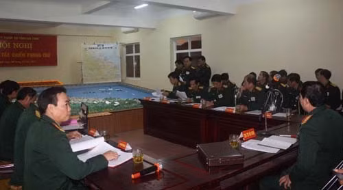 Thiếu tướng Nguyễn Đức Tới - Chỉ huy trưởng Bộ CHQS tỉnh- hướng dẫn phân tích tình hình địch đổ bộ từ