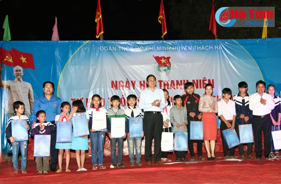 Nhân dịp này, Huyện đoàn Thạch Hà đã trao 15 suất học bổng (mỗi suất trị giá 500.000 đồng) cho 15 học sinh có hoàn cảnh khó khăn vươn lên học giỏi trên địa bàn.