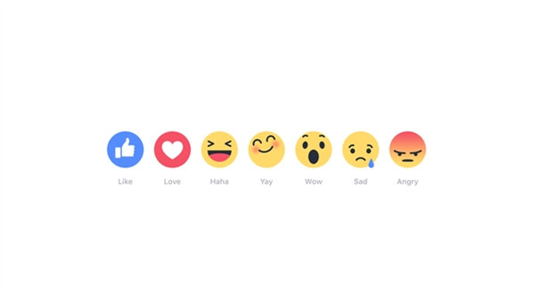 Nút bấm "reactions" của Facebook bao gồm 6 emoji hoạt hình mà bạn có thể sử dụng để phản hồi bài đăng của bạn bè mình: love (yêu thương), haha (một điệu cười), yay (mô tả niềm vui, sự ủng hộ, chiến thắng...), wow (mô tả sự ngạc nhiên, thán phục), sad (buồn), và angry (giận dữ). Để sử dụng tính năng này, bạn nhấn giữ nút like cho tới khi 6 emoji mới hiện ra rồi chọn một trong số đó.