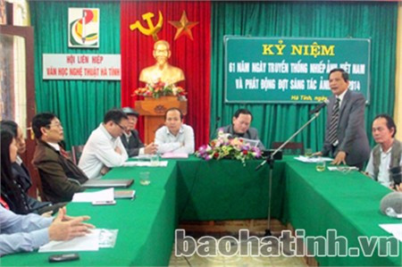 (Baohatinh.vn) - Sáng nay (13/3), Hội Liên hiệp VHNT Hà Tĩnh tổ chức gặp mặt hội viên, CTV Hội nhiếp ảnh tỉnh nhân kỷ niệm 61 năm Ngày truyền thống Nhiếp ảnh Việt Nam và phát động “Cuộc vận động sáng tác ảnh về đề tài Quốc phòng toàn dân và Lực lượng vũ trang nhân dân 2014”.
