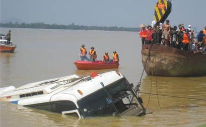 Cuối cùng thì chiếc xe bị nạn cũng được kéo lên bờ trước những ánh mắt vô hồn và tiếng nấc nghẹn ngào của thân nhân các gia đình có người tử nạn.