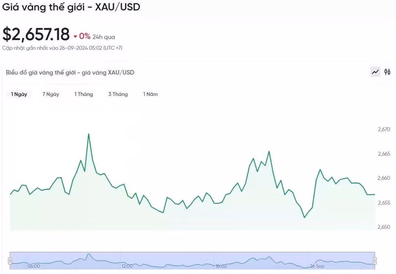 Giá vàng thế giới hôm nay 26/9/2024 và biểu đồ biến động giá vàng thế giới 24h qua