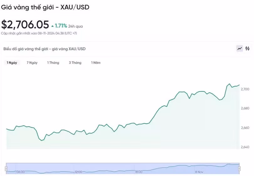 Giá vàng thế giới hôm nay 8/11/2024 và biểu đồ biến động giá vàng thế giới 24h qua