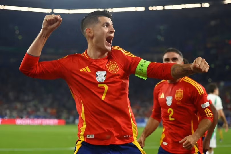 Nỗ lực tấn công của "La Roja" được đền đáp bằng bàn mở tỷ số ở phút 55. Xuất phát một pha tấn công bên cánh trái, Morata đánh đầu khiến Donnarumma không thể bắt dính. Bóng đạp chân Riccardo Calafiori rồi nảy ngược vào lưới trước sự ngỡ ngàng của dàn sao nhà đương kim vô địch.