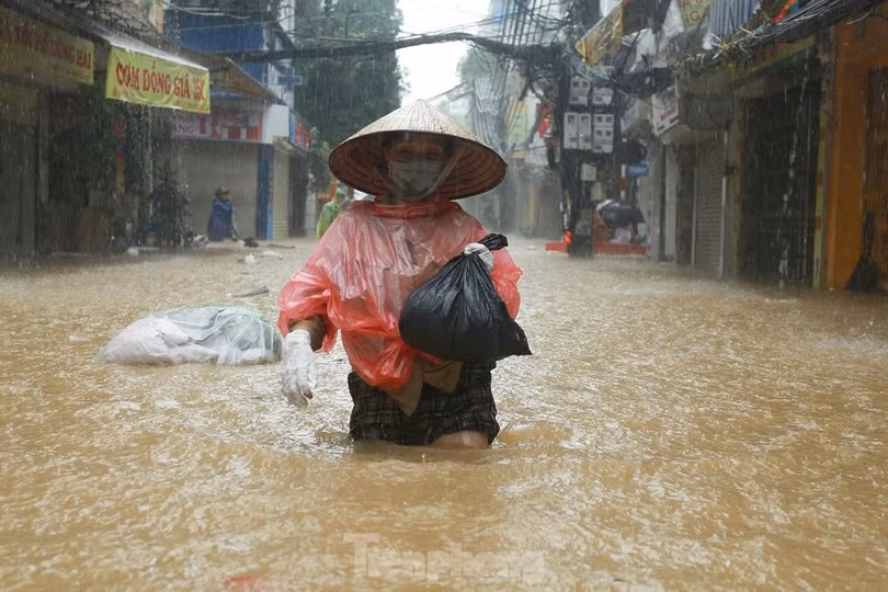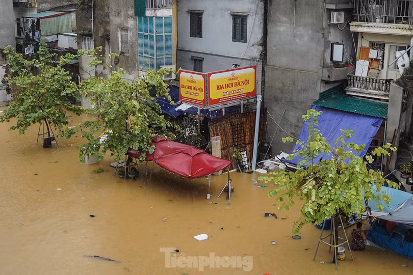 "Kinh hoàng, sáng ngủ dậy nhìn ra đường chỉ thấy nước. Chúng tôi đang cố gắng dọn dẹp, đưa đồ lên cao để về quê tránh lũ", chị Linh chia sẻ.