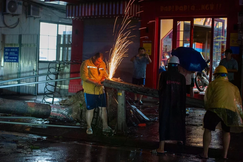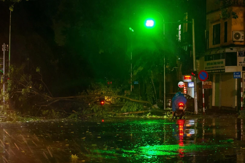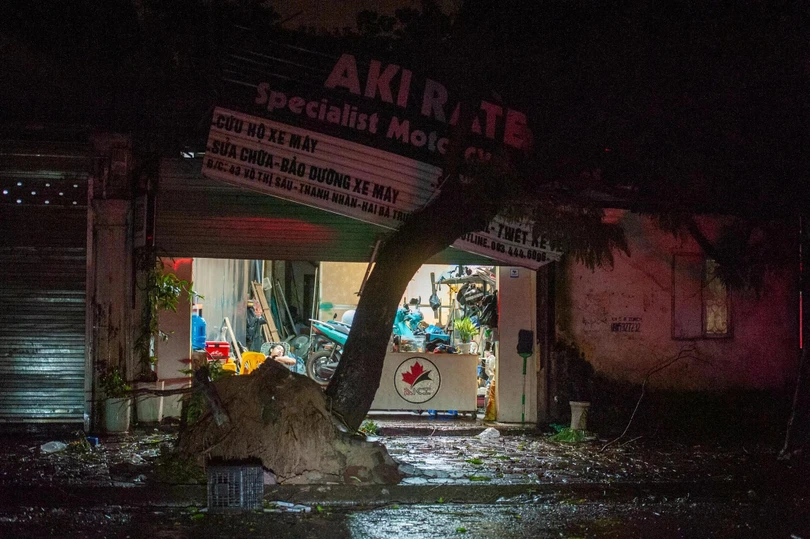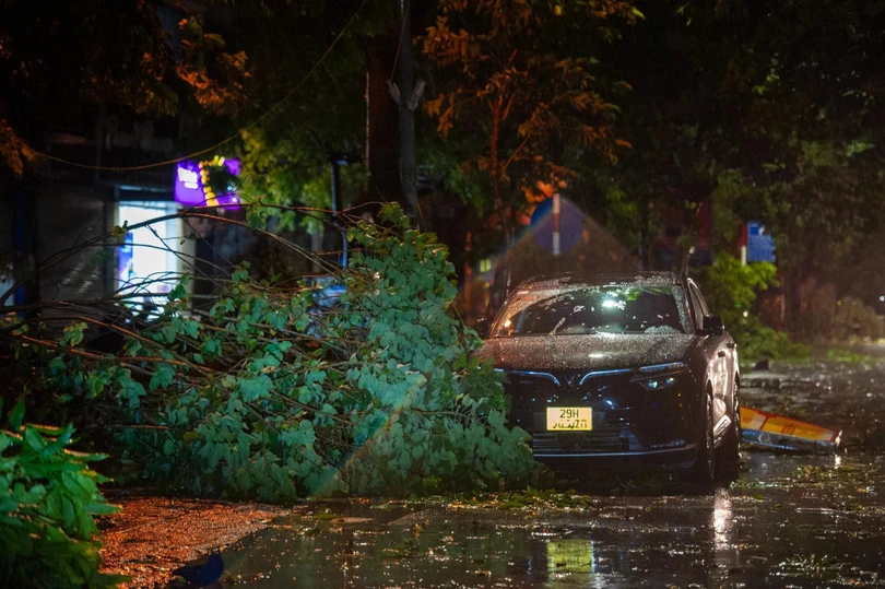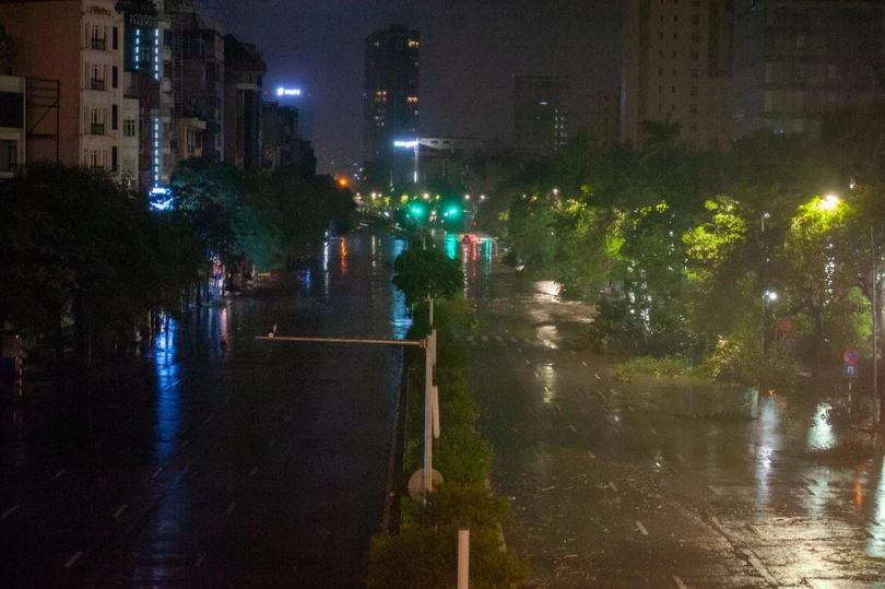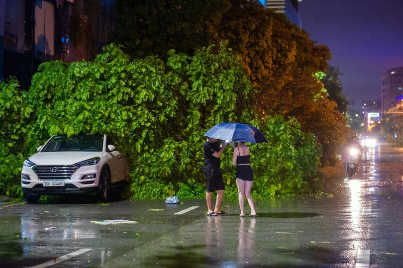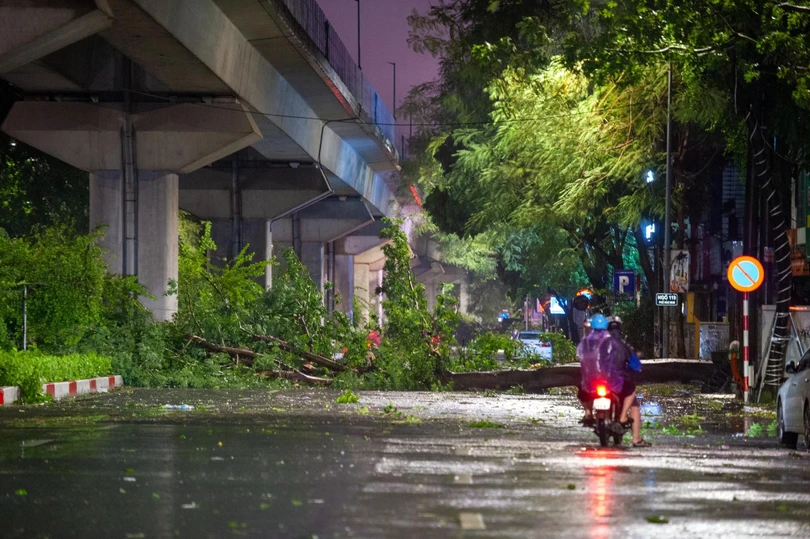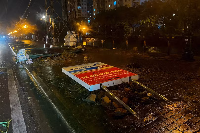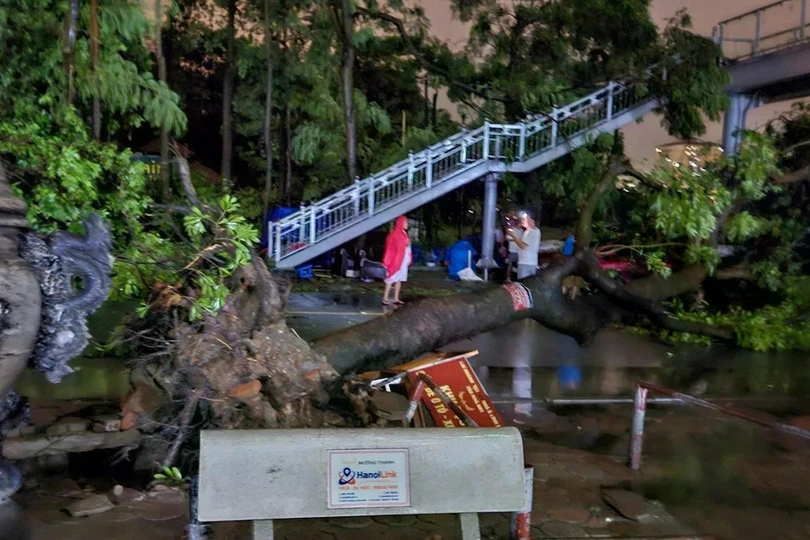 Đêm 7/8, sau khi bão YAGI đổ bộ vào Hà Nội với sức gió mạnh nhất cấp 9-10, giật cấp 12 đã để lại khung cảnh tan hoang. Biển quảng cáo, cột điện, cây cối, tôn nằm la liệt trên đường, nhiều xe cộ bị đè nát.