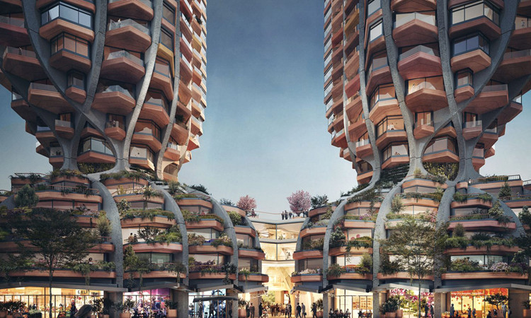 Các ban công của hai tòa nhà ở Vancouver phủ đầy cây xanh. Ảnh: Heatherwick Studio.