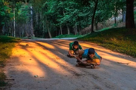 Xe đua tự chế của hai cậu bé người Ấn Độ.