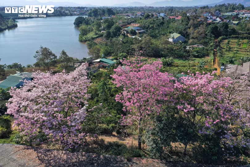 Sắc hồng ngọt ngào, đáng yêu của hoa kèn hồng phủ kín cả một góc trời trên những cung đường tại thành phố Bảo Lộc (tỉnh Lâm Đồng).