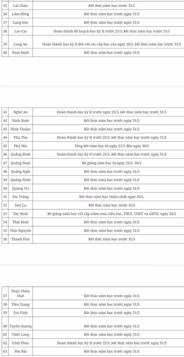 Như vậy, học sinh sẽ được nghỉ hè chậm nhất từ 1/6 , còn nếu sớm hơn sẽ tùy thuộc vào kế hoạch của địa phương.