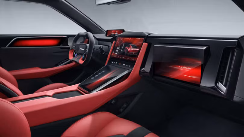 Bên trong cabin, GT Concept gây ấn tượng với nhiều chi tiết trang trí màu đỏ, vô lăng độc đáo và đặc biệt là có rất nhiều màn hình hiển thị, trong đó bao gồm một màn hình trên bảng điều khiển trung tâm và một màn hình cho hành khách phía trước. Honda cho biết thiết kế này nhằm mang đến cho người dùng không gian nội thất như một rạp hát di động.