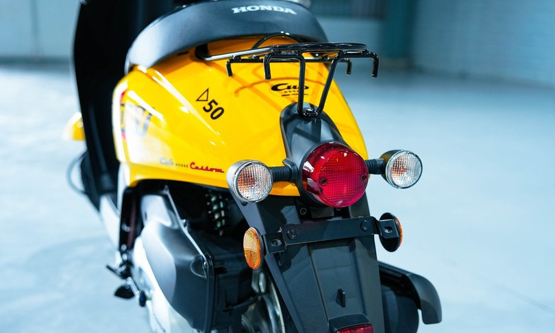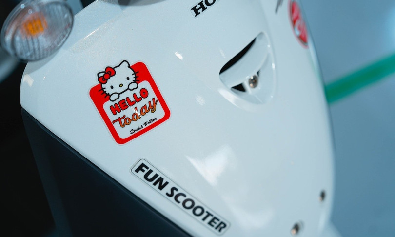 Trong số ba phiên bản, lựa chọn màu trắng có họa tiết Hello Kitty trang trí trên thân xe. Đây là một nhân vật hoạt hình hư cấu trong văn hóa Nhật Bản.