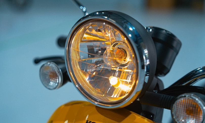 Đèn chiếu sáng phía trước của xe đều dạng tròn và bóng halogen truyền thống. Ốp viền mạ crôm xung quanh đèn pha tạo điểm nhấn.