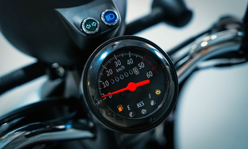Đồng hồ tốc độ dạng cơ truyền thống. Phía trên là hai nút đèn báo xi-nhan và đèn pha hoạt động.
