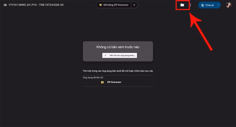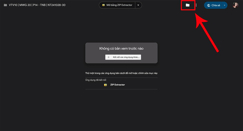 Bước 1: Nhấn vào link Google Drive đó và mở lên như bình thường. Lúc này bạn sẽ thấy trên màn hình hiển thị mục Không có bản xem trước. Để tải file về và xem nội dung bên trong, bạn hãy nhấn chọn vào biểu tượng Thư mục như hình.