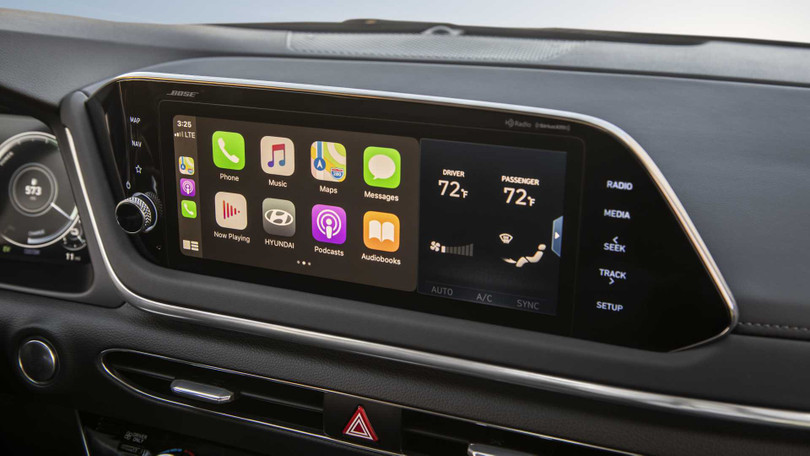 Bên trong, Sonata Hybrid đạt tiêu chuẩn với màn hình thông tin giải trí 8 inch. Người mua có thể nâng cấp lên màn hình 10,25 inch và cụm công cụ kỹ thuật số 12,3 inch. Bộ hỗ trợ lái xe tiêu chuẩn bao gồm hỗ trợ tránh va chạm phía trước, hỗ trợ tránh va chạm tại điểm mù, hỗ trợ tránh va chạm phía sau, hỗ trợ giữ làn đường và điều khiển hành trình thông minh tiên tiến khi dừng và đi. Hỗ trợ lái xe trên đường cao tốc là một số tùy chọn thêm.
