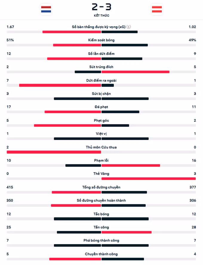 Đội hình thi đấu Hà Lan vs Áo