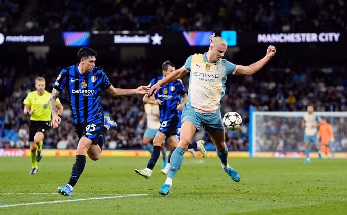 Sau tiếng còi khai cuộc, Inter Milan biết mình biết ta nên chủ động kéo thấp đội hình phòng ngự chờ thời cơ phản công. Phút 19, cơ hội nguy hiểm đầu tiên đến với Man City khi Haaland đánh đầu trong vòng cấm song bóng tìm đúng vị trí của thủ thành Yann Sommer.