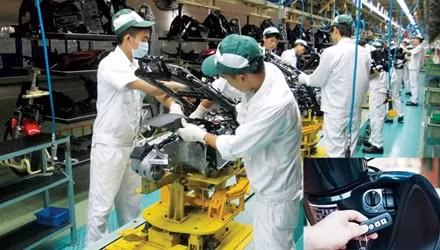Dây chuyền lắp ráp xe máy tay ga SH ở khu công nghiệp Đồng Văn, Hà Nam (ảnh lớn); Hệ thống khóa thông minh của xe SH (ảnh nhỏ). Ảnh: PV.