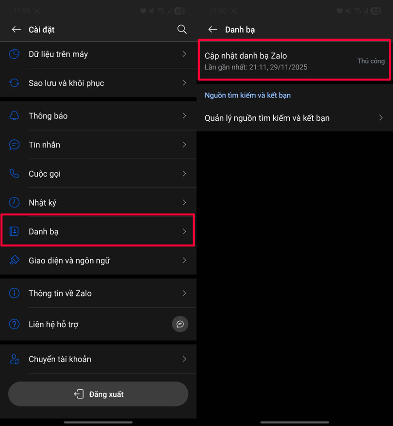Bước 2: Chọn tiếp mục Danh bạ > Lúc này bạn hãy chọn vào mục Cập nhật danh bạ Zalo.