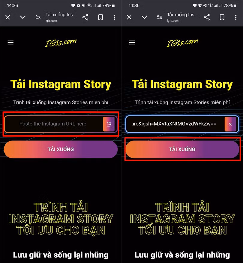 Bước 3:Dán link của Story mà bạn đã sao chép ở bước 1 vào > Nhấn chọn tiếp vào mục Tải xuống nhé.