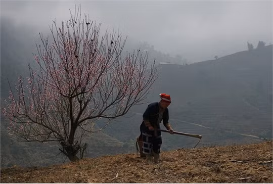 Đào cổ thụ nở tại Bản Khoang (Sa Pa).