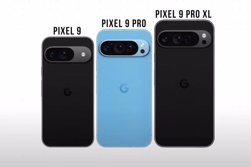 Dòng Pixel 9 của Google sẽ có ba model gồm Pixel 9, Pixel 9 Pro và Pro XL với thiết kế vuông vắn cùng cụm camera dạng viên nang quen thuộc nhưng khung bảo vệ gọn hơn, thay vì thanh dài ngang thân máy như thế hệ trước. Pixel 9 có màn hình 6,24 inch, còn Pixel 9 Pro là 6,34 inch và Pixel 9 Pro XL là 6,73 inch.