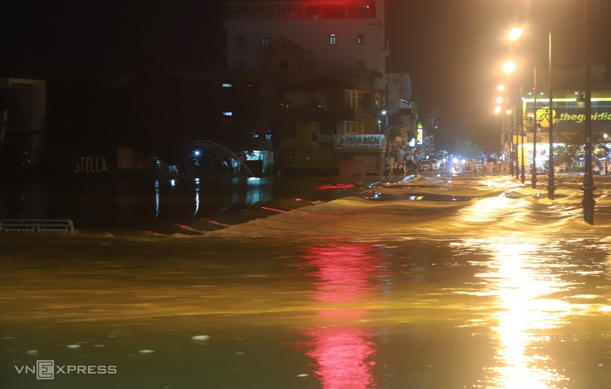Tối 26/10, Đập Đá nằm giữa sông Hương và Như Ý nước dâng cao 0,7 m, tràn vào nhà dân hai bên sông. Chính quyền cấm đường từ trưa cùng ngày.