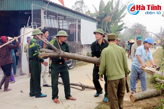 (Baohatinh.vn) - Sáng 5/3, tại xã Xuân Phổ, Ban CHQS huyện Nghi Xuân huy động 40 cán bộ, chiến sỹ tham gia cùng lực lượng đoàn viên, thanh niên trên địa bàn giúp dân mở rộng hành lang, tu sửa các tuyến đường giao thông nông và nâng cao bề mặt sân thể thao một số xóm.