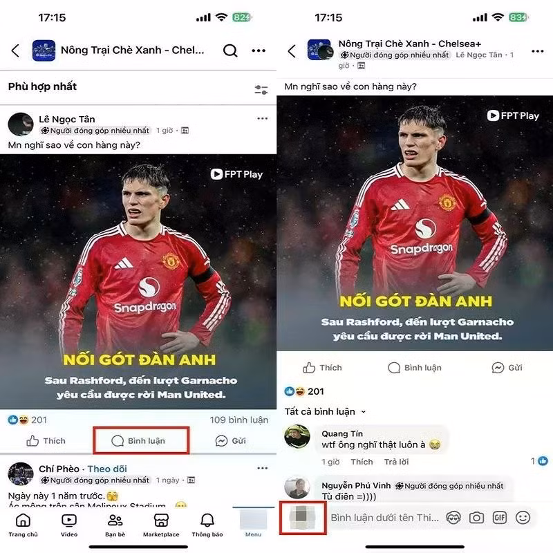 Bước 2: Tiếp đến, bạn tìm bài đăng trong nhóm muốn chia sẻ ý kiến và chọn vào mục Bình luận. Lúc này, hãy nhấn vào ảnh đại diện của bạn nằm ở góc dưới bên phải màn hình.