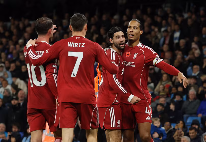 Bên cánh trái, Jeremy Doku liên tục "hành hạ" Conor Bradley bằng những pha đi bóng đầy tốc độ. Ở phía trong, Ibrahima Konate cũng không có sự bọc lót kịp thời, thậm chí còn khiến Liverpool chịu phạt đền sau một pha thi đấu lóng ngóng ở phút thứ 10.