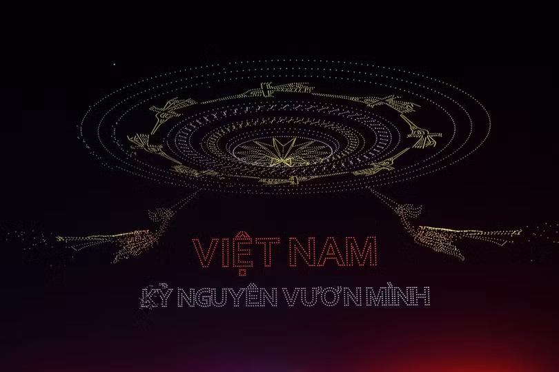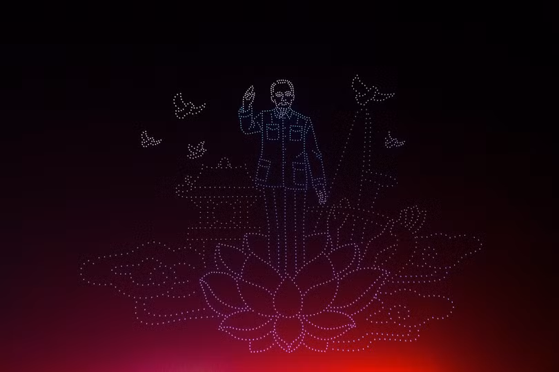 Tối 28/4, 10.500 drone lần lượt thắp sáng bầu trời TP.HCM trong khoảng 7 phút, chào mừng 50 năm thống nhất đất nước với hàng loạt hình ảnh biểu tượng như Bác Hồ, Dinh Độc Lập...