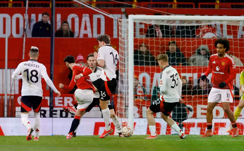 Sau ít phút đầu nhập cuộc chậm chạp, MU bất ngờ dồn lên và tạo ra sức ép khá lớn về phía khung thành của Fulham. Phút 12, Bruno Fernandes tung cú sút khá căng khiến Bernd Leno phải vất vả cản phá.