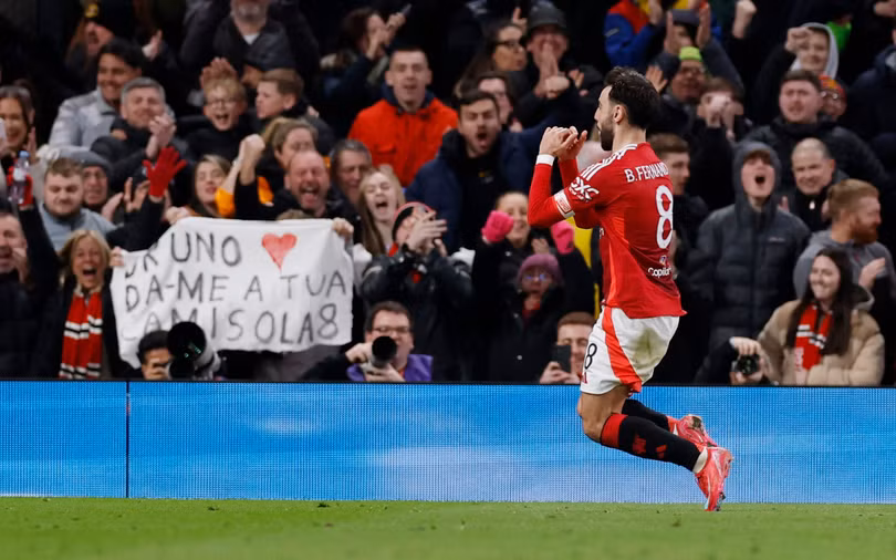 Khi chủ nhà gặp khó, Bruno một lần nữa sắm vai người hùng. Phút 71, Dalot thoát xuống sau pha thả bóng của Garnacho. Ở phía trong, Bruno chọn vị trí, xoay người dứt điểm hiểm hóc vào góc xa, biến nỗ lực bay người của Leno thành vô nghĩa. Tiền vệ sinh năm 1994 chạm mốc 10 bàn cho MU mùa này, đi kèm với đó là 12 đường kiến tạo.