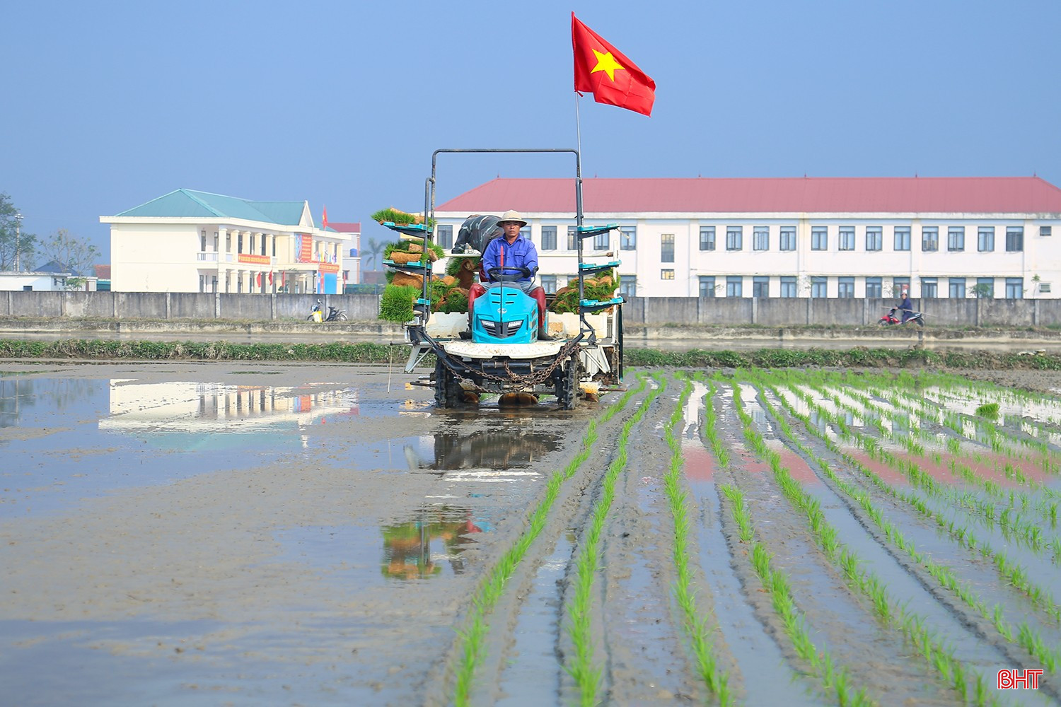 Tại vùng đồng Phốc, thôn Tiến Thắng (xã Cẩm Hưng), máy cấy liên tục chạy ầm ì trên đồng ruộng, theo phía sau là những hàng mạ non xanh đều, thẳng tắp. Bà con nông dân rất phấn khởi khi lần đầu tiên được đưa máy cấy vào canh tác lúa, góp phần giảm công lao động và nâng cao hiệu quả sản xuất.